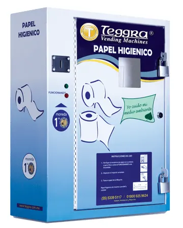 Maquina Vending de Papel Higiénico Modelo Security es de uso rudo. Su gabinete, hecho de lámina de metal, cuenta con una puerta empotrada y 2 portacandados que le garantizan una mayor solidez. Ideal para centros comerciales, gasolineras, hospitales, universidades, terminales de autobuses y muchos más lugares.