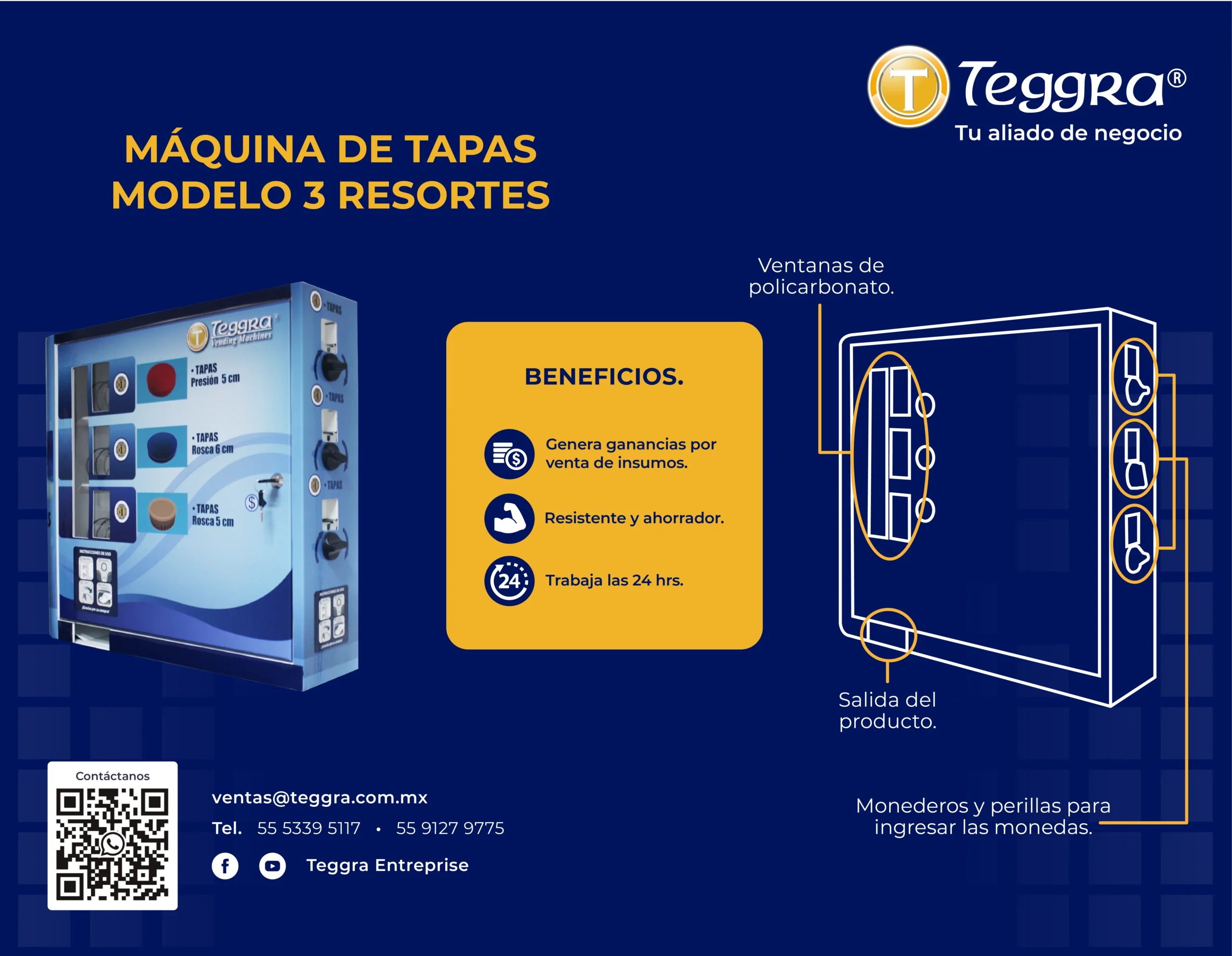 • Máquina mecánica, sin necesidad de energía eléctrica de abastecimiento sencillo, las tapas se colocan entre los resortes, es fácil de operar y mantenimiento sencillo.