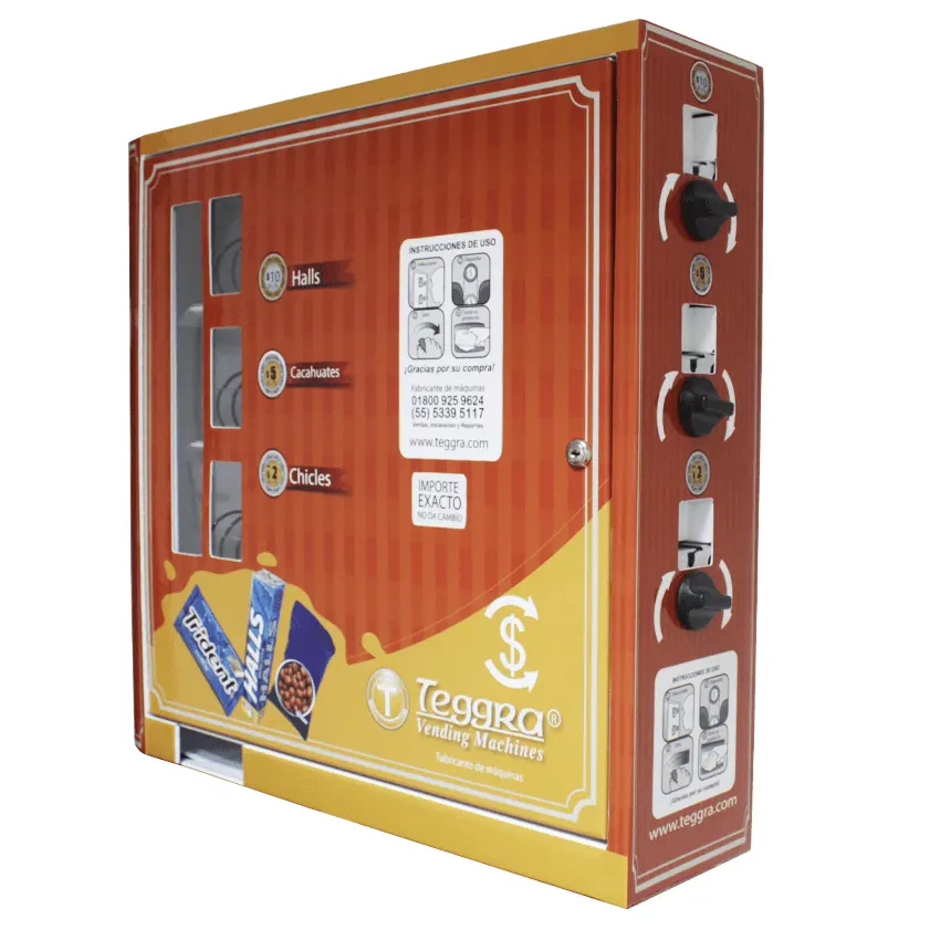 El modelo de máquinas “3 resortes” cuenta con 3 selecciones. Personalizamos el diseño a su producto para que sea 100% moderno y atractivo para su cliente final.